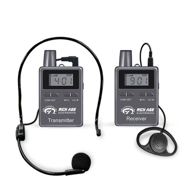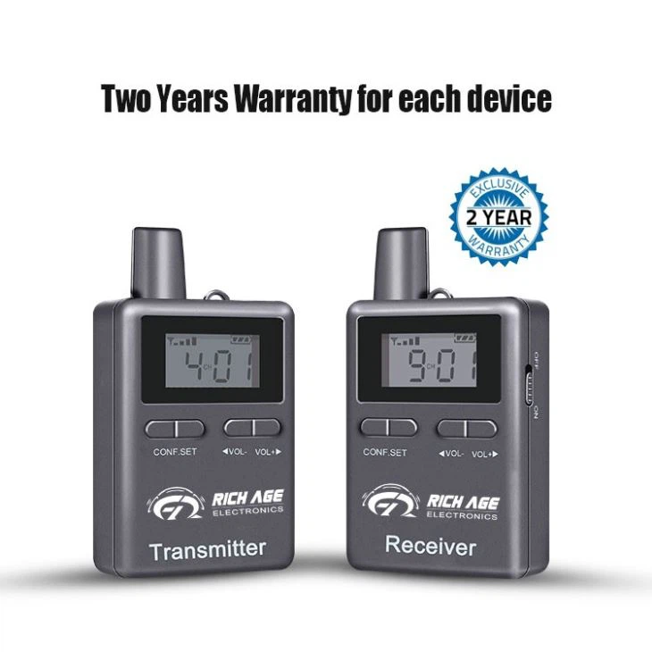 Rich Age 10 ildən çoxdur simsiz bələdçi sistemlərinin dizaynı və istehsalında ixtisaslaşmışdır. Rich Age simsiz bələdçi sistemi çox yüngül və kompakt olan, uzun istifadə zamanı da rahatlıq təmin edən bir-bir-çox səs ötürmə cihazıdır. Alıcının 200 metrə qədər səs qəbul məsafəsi var, buna görə də turistlərin geri qalmasından narahat olmağa ehtiyac yoxdur. Bizim avadanlıqlarımız 2.4G beynəlxalq ümumi kanalından istifadə edir, bu da heç bir müdaxilə və təhlükəsizlik təmin etmir. Bundan əlavə, tezlik müdaxiləsi olmadan eyni yerdə məhsuldan eyni vaxtda istifadə edən 50-80 tur qrupunu dəstəkləyə bilər, bu da tur bələdçilərinin idarə edilməsi üçün çox rahat olur.